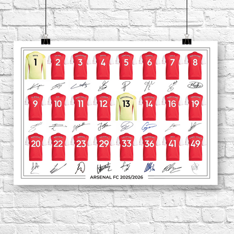 Arsenal FC Signed 2025-26 Signed Team Poster, Autographed By Full Squad, Choose Framed or Print Only