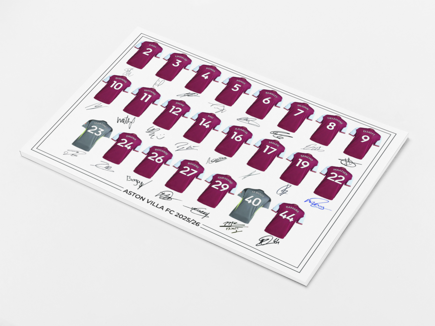 Aston Villa FC Signed 2025-26 Signed Team Poster, Autographed By Full Squad, Choose Framed or Print Only